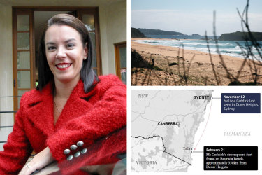 Melissa Caddick’s foot was found on Bournda Beach.Credit:SMG, Angi High