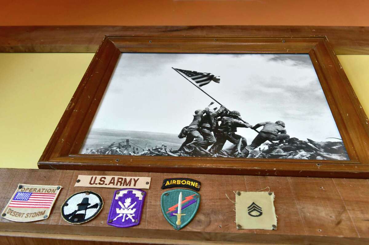 Peter Hvizdak / Hearst Connecticut MediaThe inside décor is filled with patriotic sentiment on every wall — framed photographs of military salutes, graduations, events, football games,that include every branch of the military. There are football helmets and jerseys hanging for U.S. Army, Navy, Marines and Air Force. There are images of aged veterans saluting the flag, the hero firefighters of 9/11 and a framed photograph of the Twin Towers.