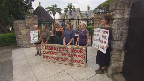 Police have blocked off the road in front of the Sydney prime ministerial residence of Kirribilli House in the face of protesters from flood-hit northern NSW.