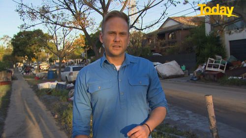 Davies (pictured) and his camera crew arrived at the corner of Oakland and Burton streets this morning, where a "staggering" amount of possessions had been left behind by residents forced to flee the floods.