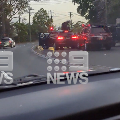 In video obtained by 9News.com.au, a passenger in a nearby vehicle films police officers wearing tactical equipment.