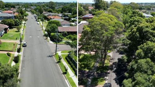 Doctors for the Environment is highlighting the 20-degree temperature difference on two neighbouring streets in Toongabbie — all thanks to extra shade — to prove its point.