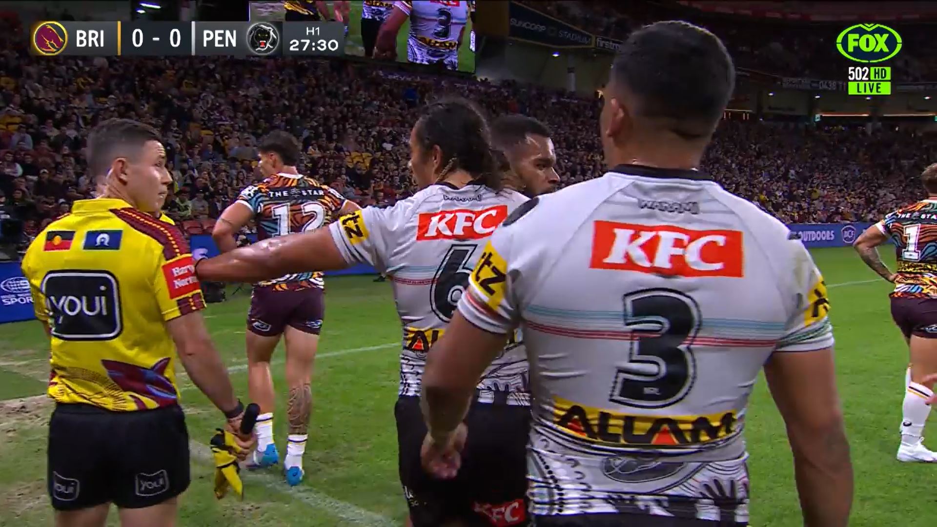 - Luai appeared to push touch judge Chris Sutton in the back during a try celebration