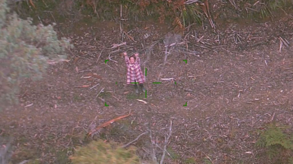 - She was found on Friday waving to a police helicopter from a track in dense bushland