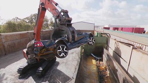 Szakacs said most of the cars that are crushed or stripped for scrap metal are because they're unroadworthy, like this now crushed Holden Commodore which was defective.