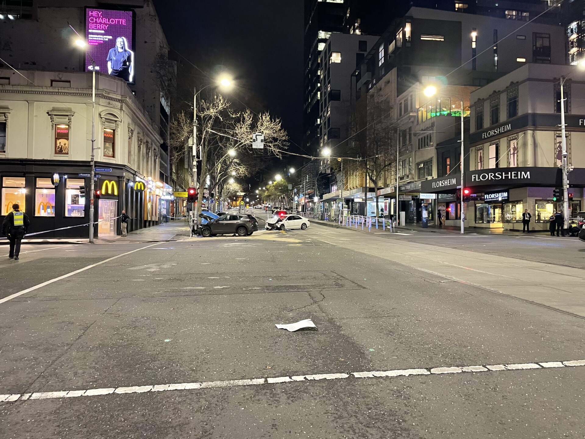 "Then at the corner of Russell and Bourke streets there were two cars that were smashed.