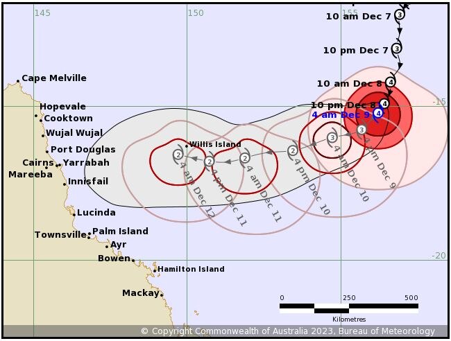 BOM's forecasting suggests Jasper could cross the Queensland coast late on Tuesday night or early Wednesday morning.