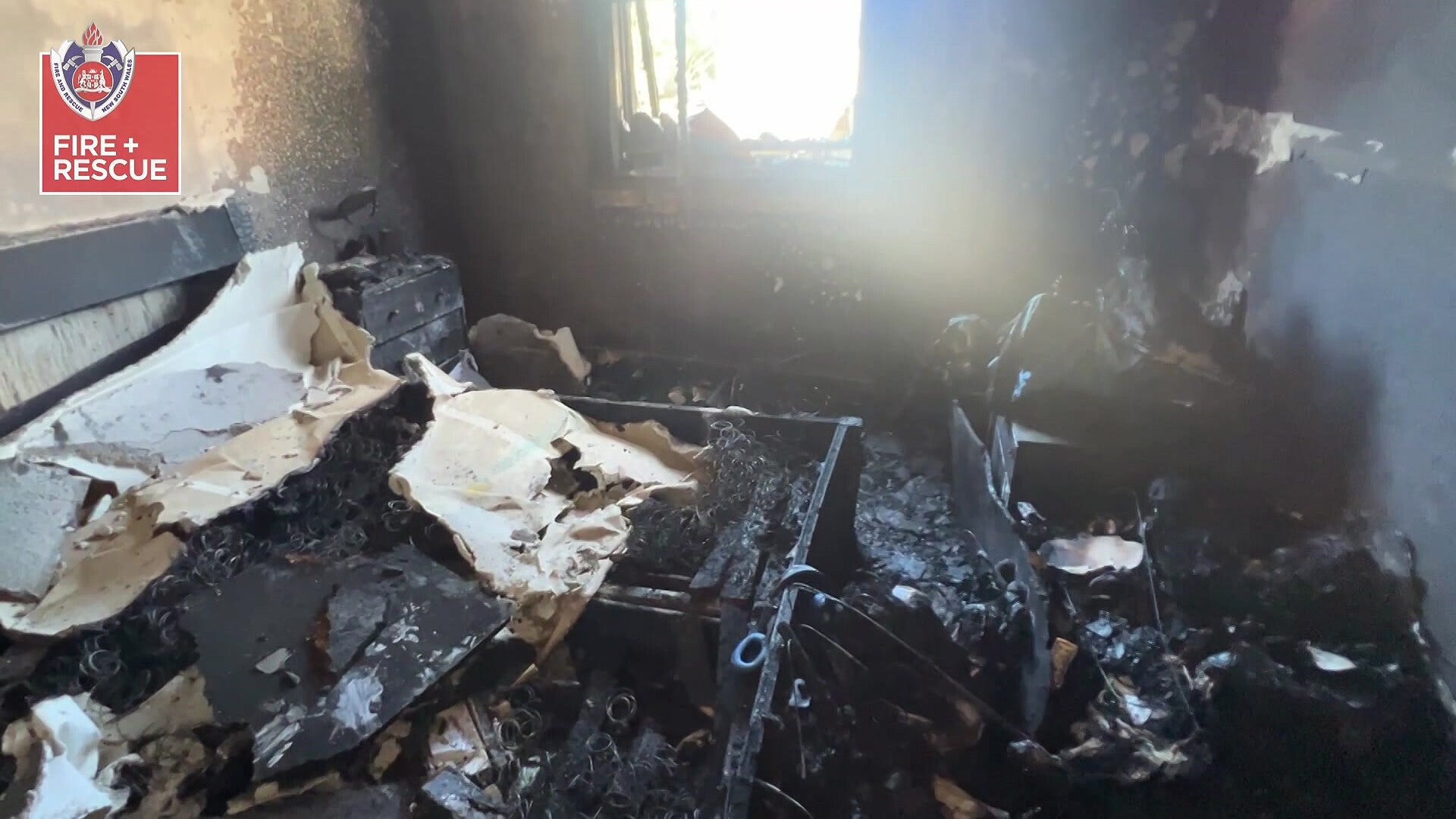"Upstairs is just all charred, the doors are half missing, the beds are just springs, there are no actual mattresses, everything is just black."