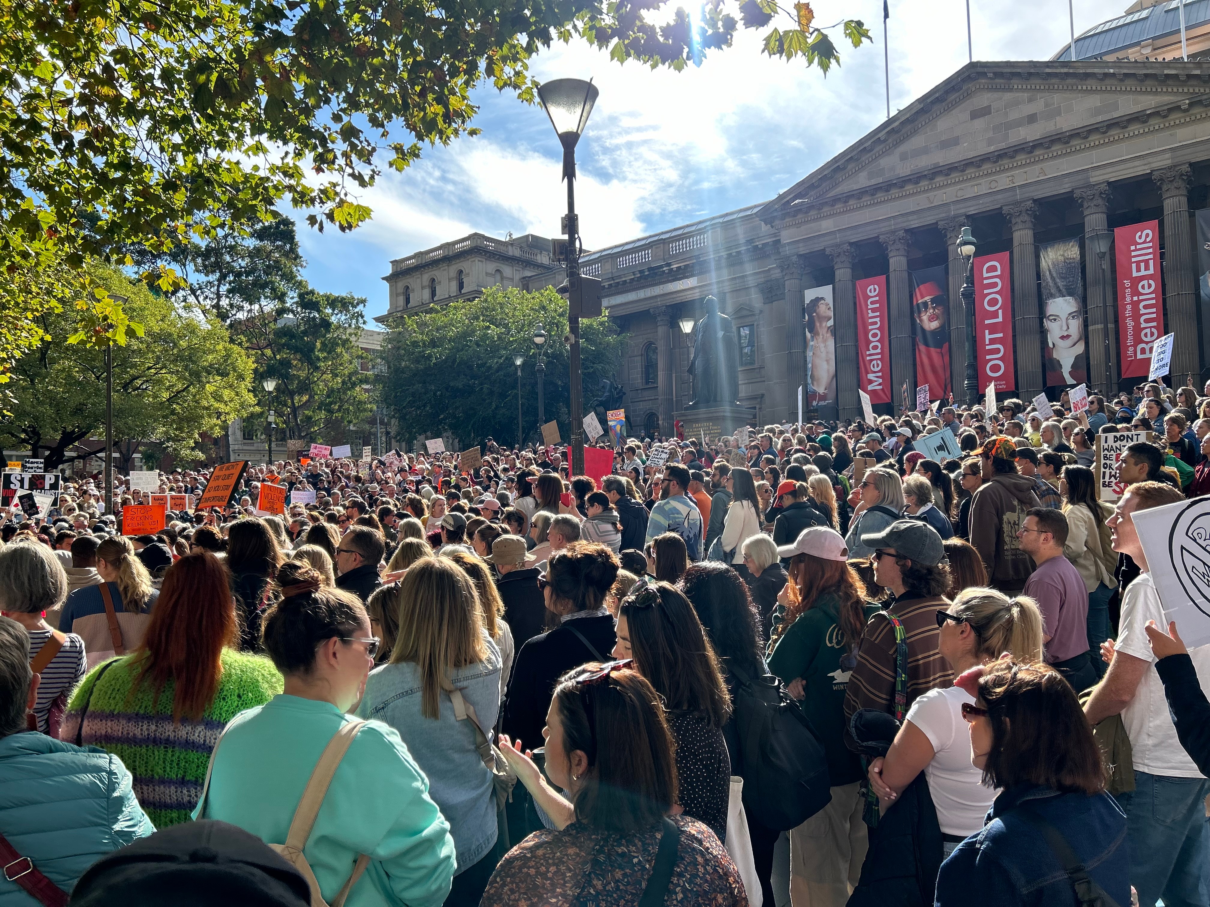 In Bendigo, hundreds of men and women gathered at a Rosalind Park in the city centre to protest.