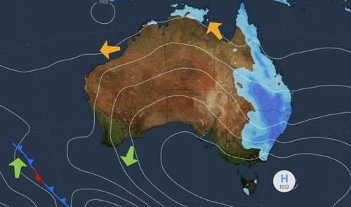Elsewhere in Australia, showers and storms are forecast for the far northern tropics, while warm winds are set to hit Western Australia's west. A high will keep elsewhere dry.