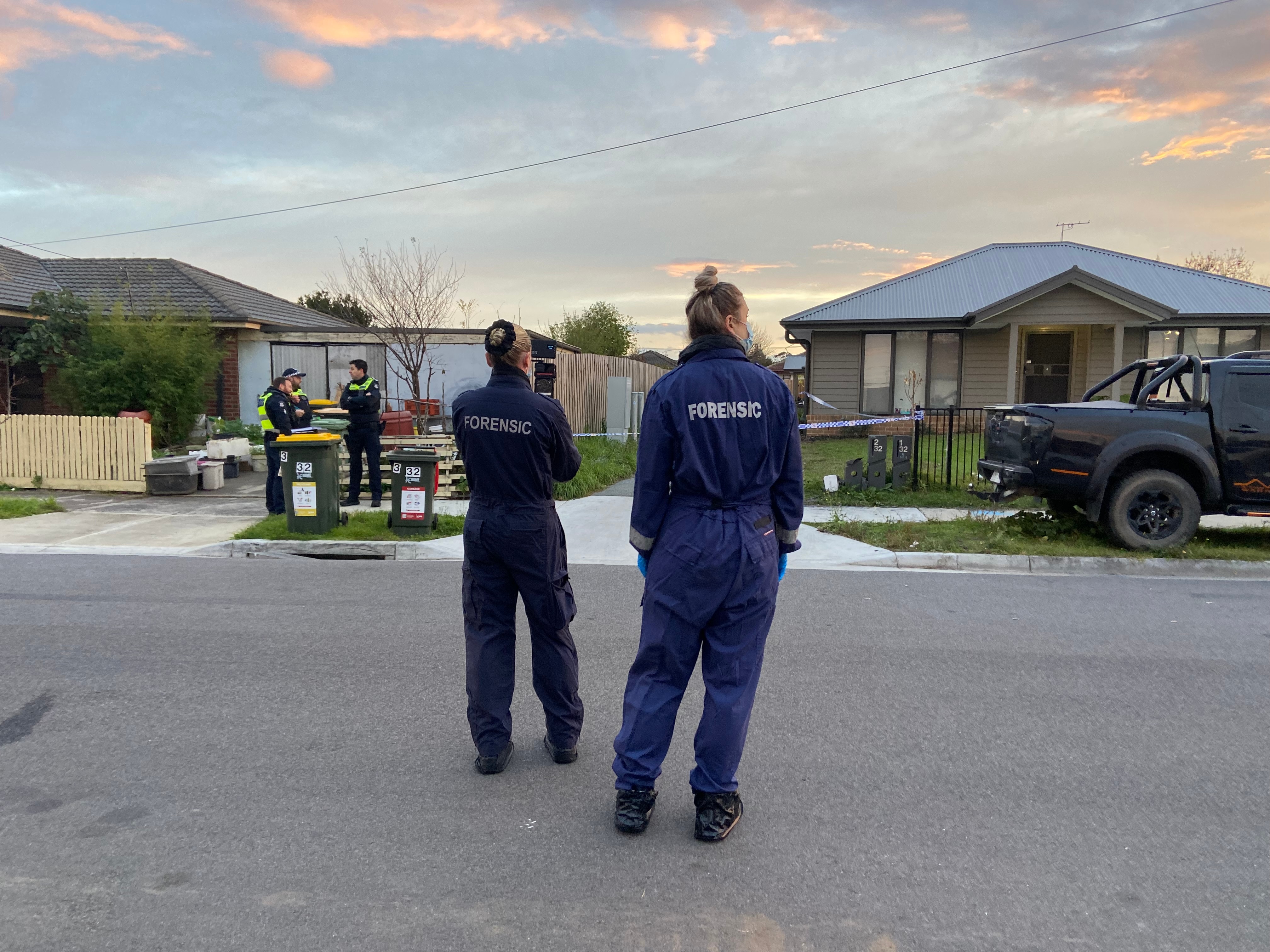 Police forensics officers visited the scene where four people died in Broadmeadows.(ABC News: Stephanie Ferrier)